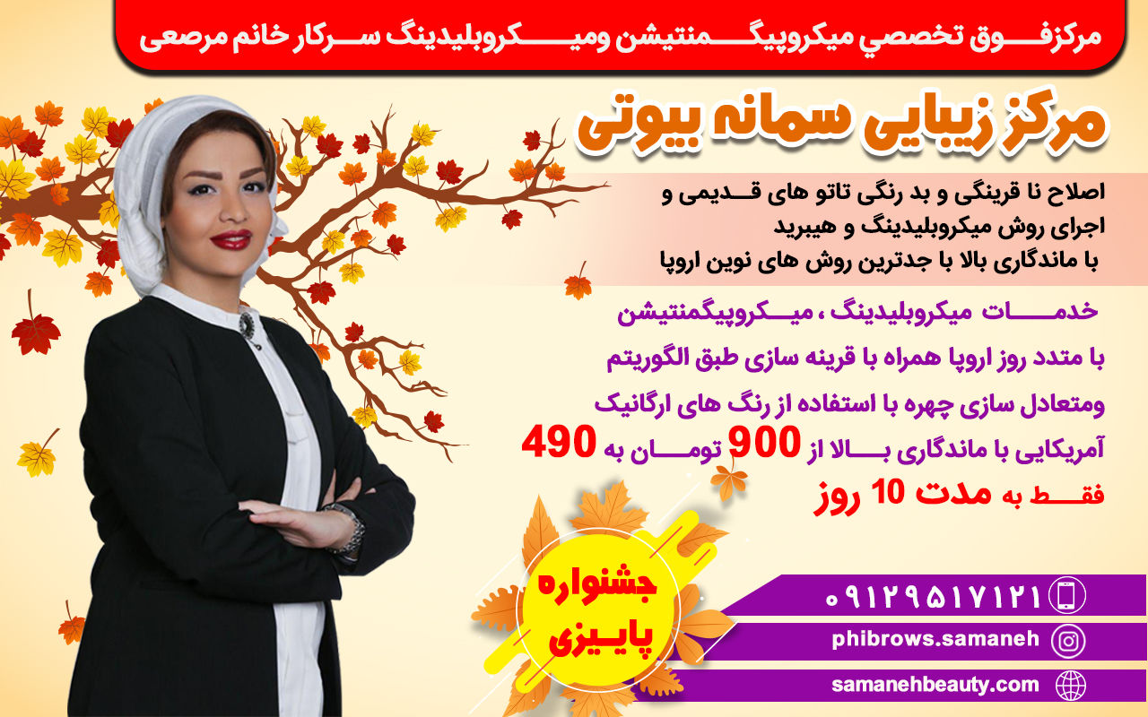 هزینه میکروبلیدینگ مرکز زیبایی سمانه بیوتی یکی از بهترین مراکز زیبایی تهران واقع در خیابان جمهوری است که شما می توانید با مراجعه به آن با خیال آسوده عمل میکروبلیدینگ خود را به دست افرادی با تجربه و با مهارت بسپارید و نتایج شگفت انگیز آن را پس از مدت کوتاهی مشاهده کنید. شما می توانید برای کسب اطلاعات بیشتر با مرکز زیبایی سمانه بیوتی تماس بگیرید.